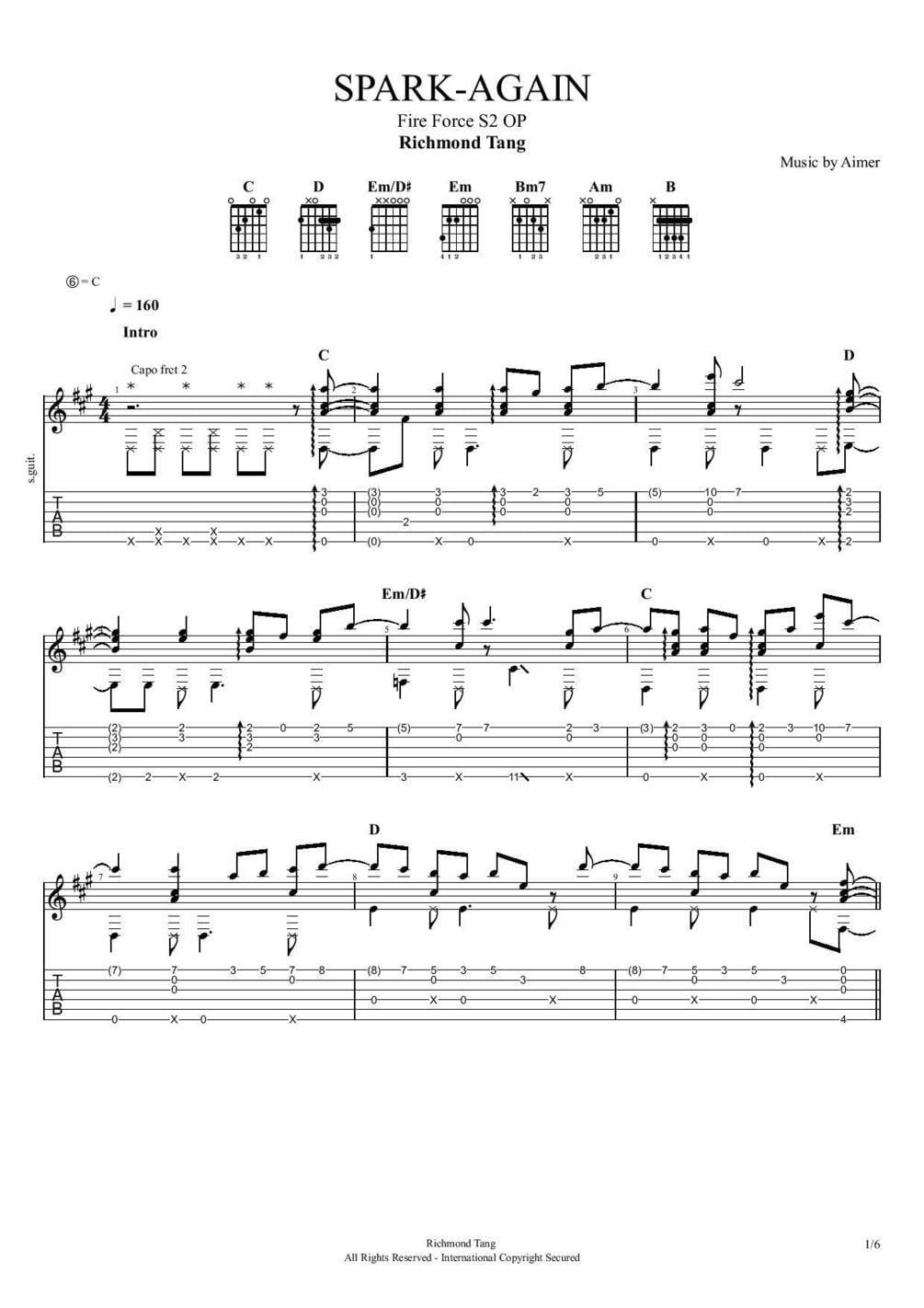《Guitar Tabs》SPARK-AGAIN | Arr by Richmond Tang